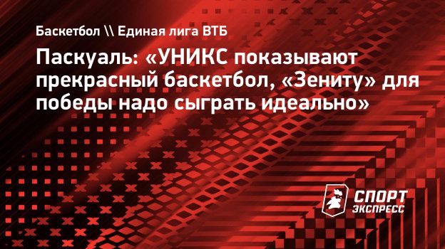 Главный тренер «Зенита» Хавьер Паскуаль прокомментировал предстоящий матч против УНИКСа в Единой лиге ВТБ.